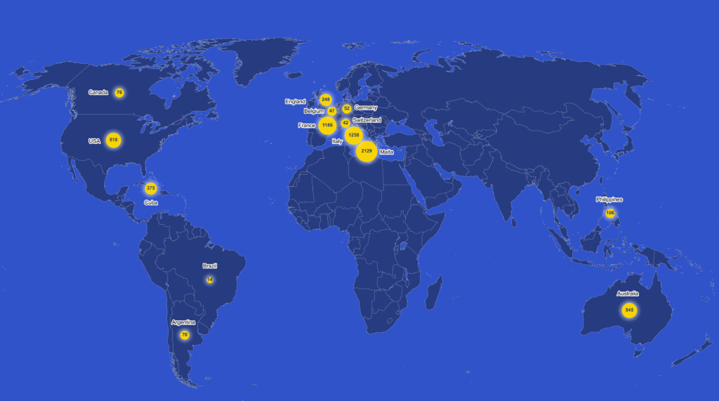 The presence or absence of a significant number of Ballacchinos or Ballachinos in these countries helps to distinguish countries with migrants from Sicily versus migrants from Malta since the Ballacchino variant name was never present in Malta. Italians likely migrated to Germany, Switzerland, Argentina and Brazil while the Maltese migrated to France and likely Belgium by way of North Africa from the 1800s and to England, Australia and Gibraltar. The United States and Canada are known to be the destinations of both Italian and Maltese migrants. The Baldoquins of Cuba are known to descend from a Maltese migrant and the origin of the Baldoquins of the Phillipines is not yet known.