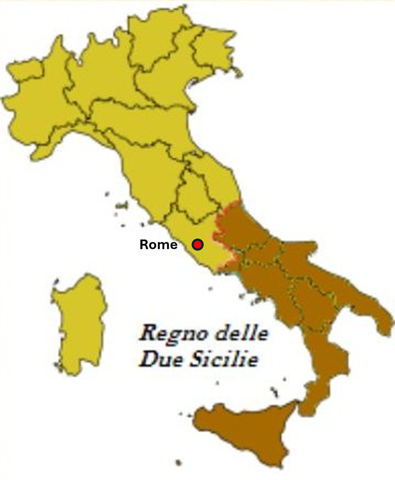 Kingdom of Two Sicilies (shown in brown), mid-15th to mid-19th centuries