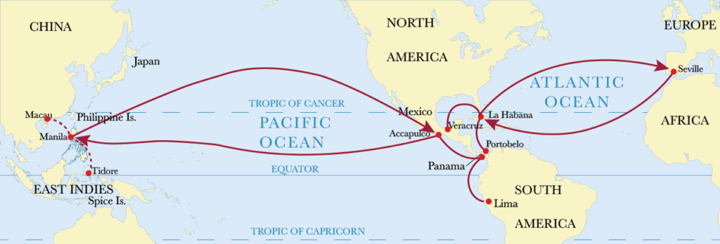 To date, we have found less than 20 genealogical records for the Baldoquin surname in the Philippines. Based on a handful of births and baptisms found beginning in 1856, our present hypothesis is that the Baldoquin surname, originating from a Maltese native born as Baldacchino who emigrated to Central America, spread to the Philippines from Cuba and Mexico via the centuries-old Manila Galleon trade route (see the Surname Distribution page). The Fleet of the Indies trade route between Spain and Central America was first established with the discovery voyages of Christopher Columbus to the West Indies in 1462, under the sponsorship of the Spanish monarchs Ferdinand and Isabella. The Manila Galleon trade route subsequently began operating between Mexico and the Philippines, a Spanish colony from the 16th to the end of the 19th century. To confirm or disconfirm this hypothesis, a male Baldoquin from the Philippines would need to do the Big Y-700 DNA test available from Family Tree DNA. Please contact us if you would be willing to take this test.